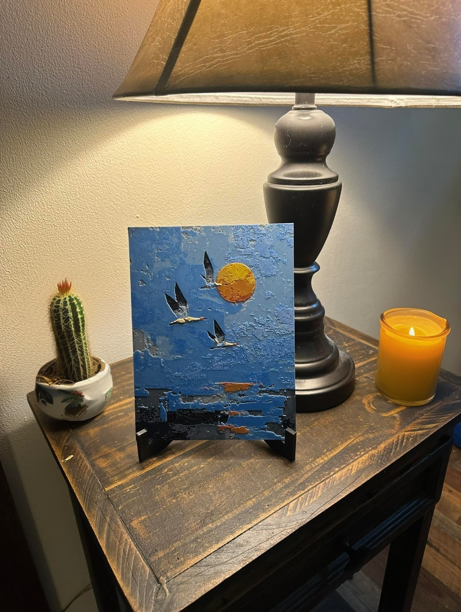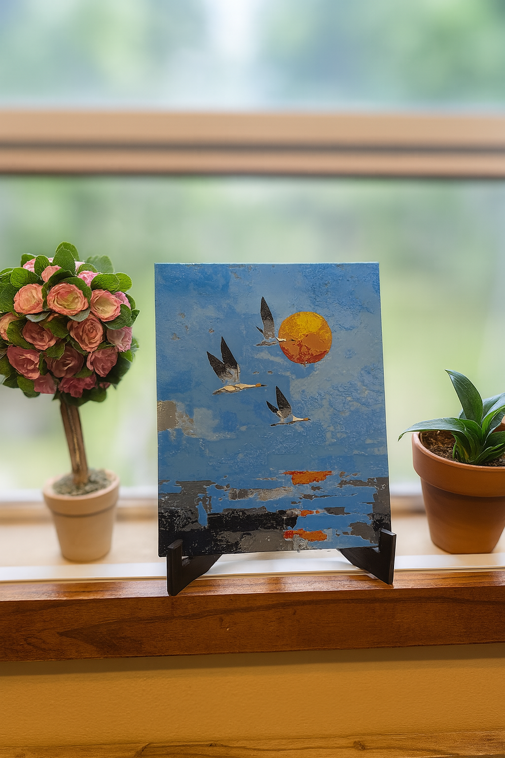 Sure, life’s a mess sometimes… but not for these feathered professionals. This cozy 3D printed masterpiece features three birds in perfect formation, cruising across a dreamy sunset sky like they’ve never missed a Monday meeting.