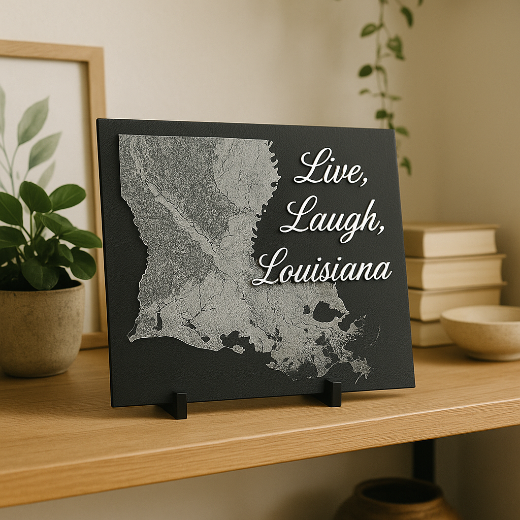 Bless your shelf with a little Southern charm, a whole lotta attitude, and the unmistakable outline of the Bayou State. “Live, Laugh, Louisiana” is more than wall art—it’s a lifestyle mantra wrapped in 3D printed pride and sweet tea energy.